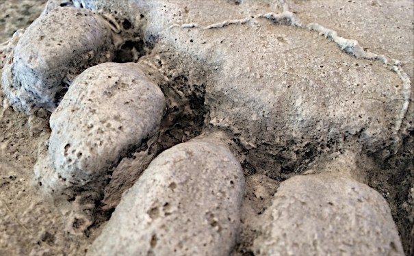 Detail of the cast of the left foot of a purported bigfoot, made by Sheriff Dennis Hereford on April 22, 1982 near Grays Harbor, WA.