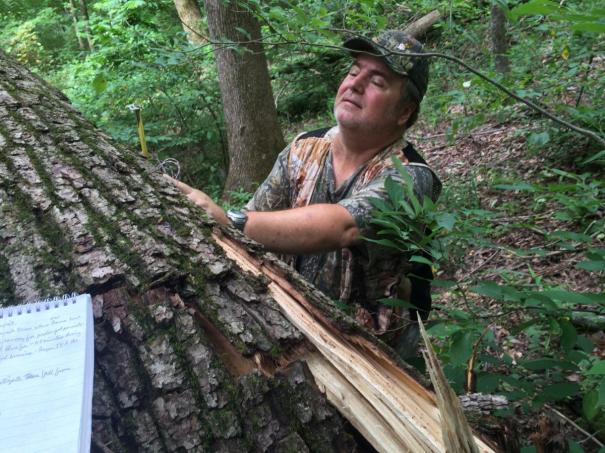 Ken Stewart investigating and documenting the tree that broke while on the phone with me during Tenacity Echo.